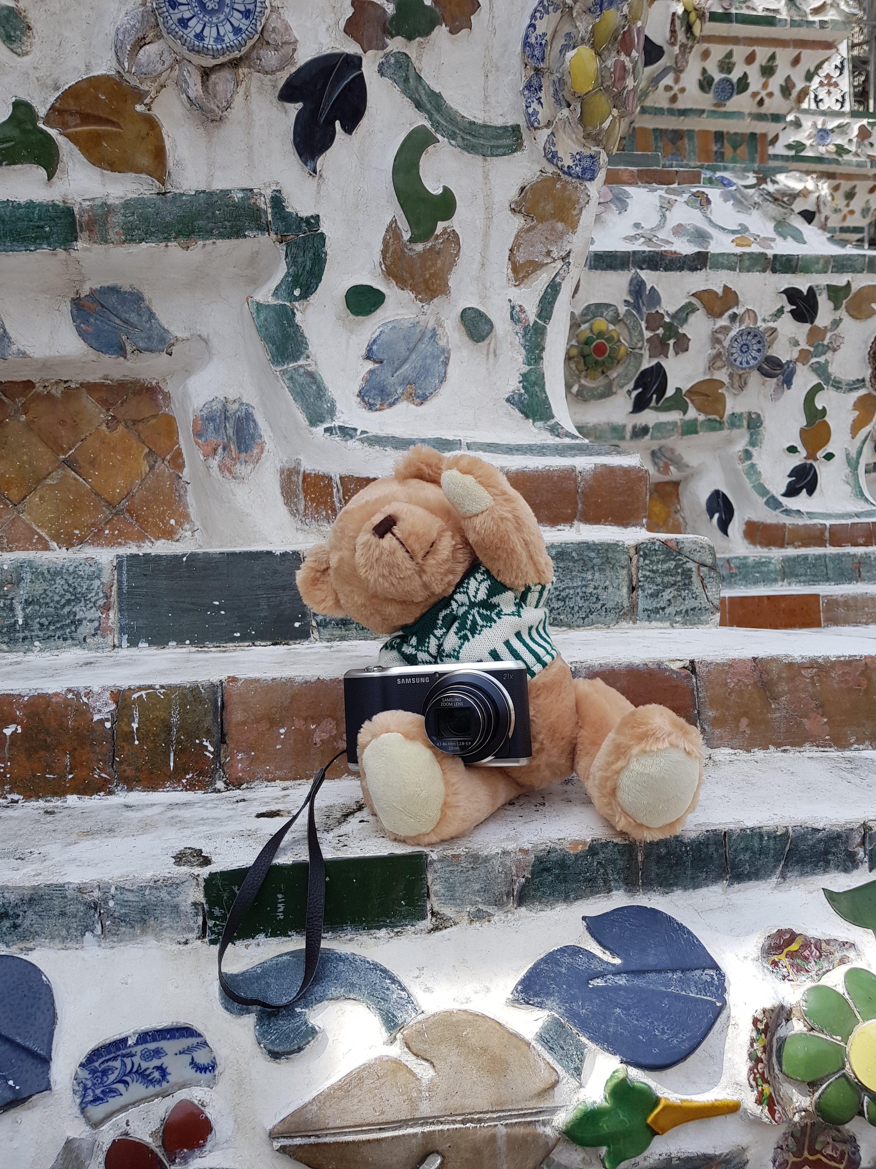 A ride back on the boat to the Temple of Dawn- we wandered about the grounds BB enjoyed snapping away.