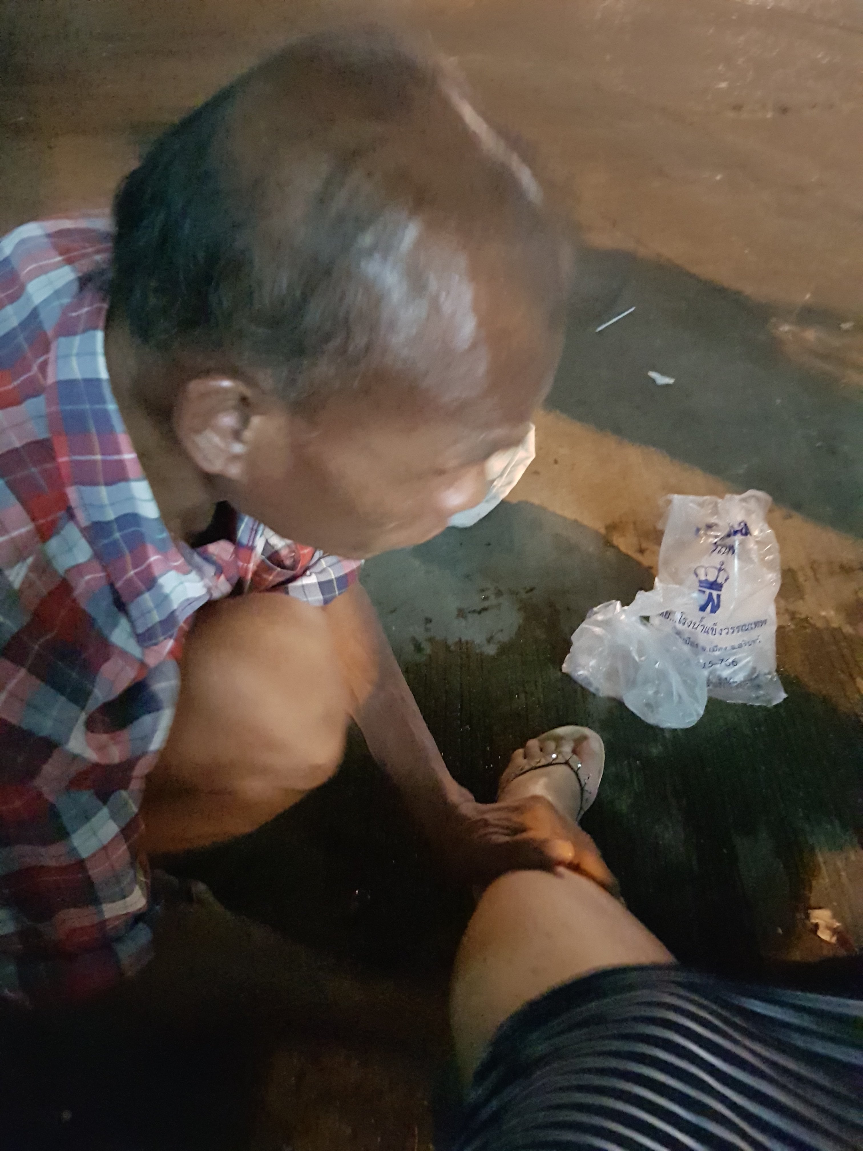 A man standing nearby hurried over and helped me by massaging my leg. From what we gathered he was an ex Thai boxer and knew what he was doing.