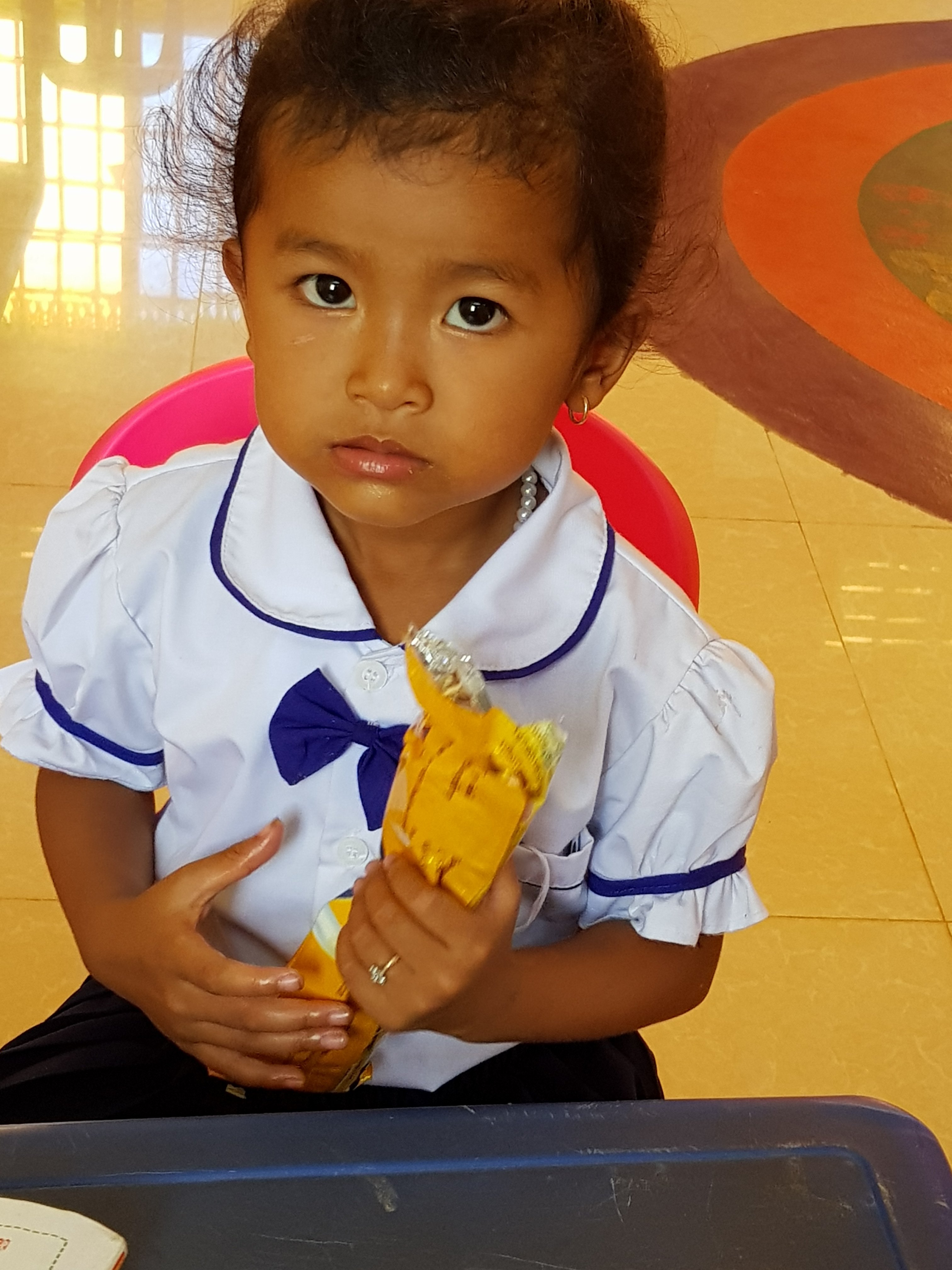 So today saw us heading to the school for our first-day teaching. The tuk-tuk ride was unbelievable, we were heading out of town so the roads deteriorated to potholed dust tracks. We felt every lump and bump, didn’t need a massage!! Our school was ELMA an English speaking school where the children came out of the public schools for an hour lesson. The Kinders stayed a full morning or afternoon. Was really surprised to find our teacher was only 18 and had limited English. The children did drill and teacher fussed so much about that.