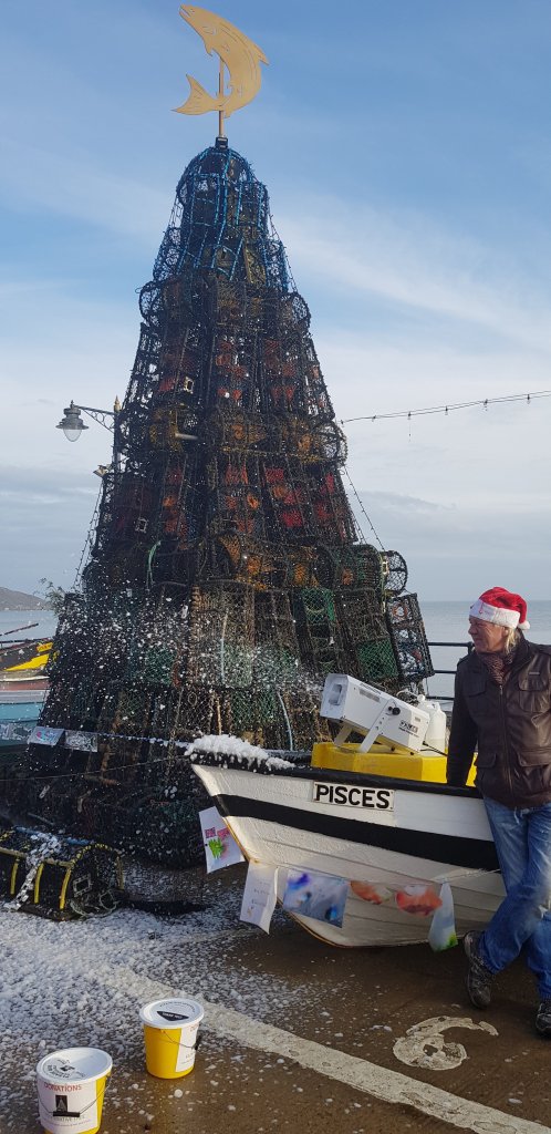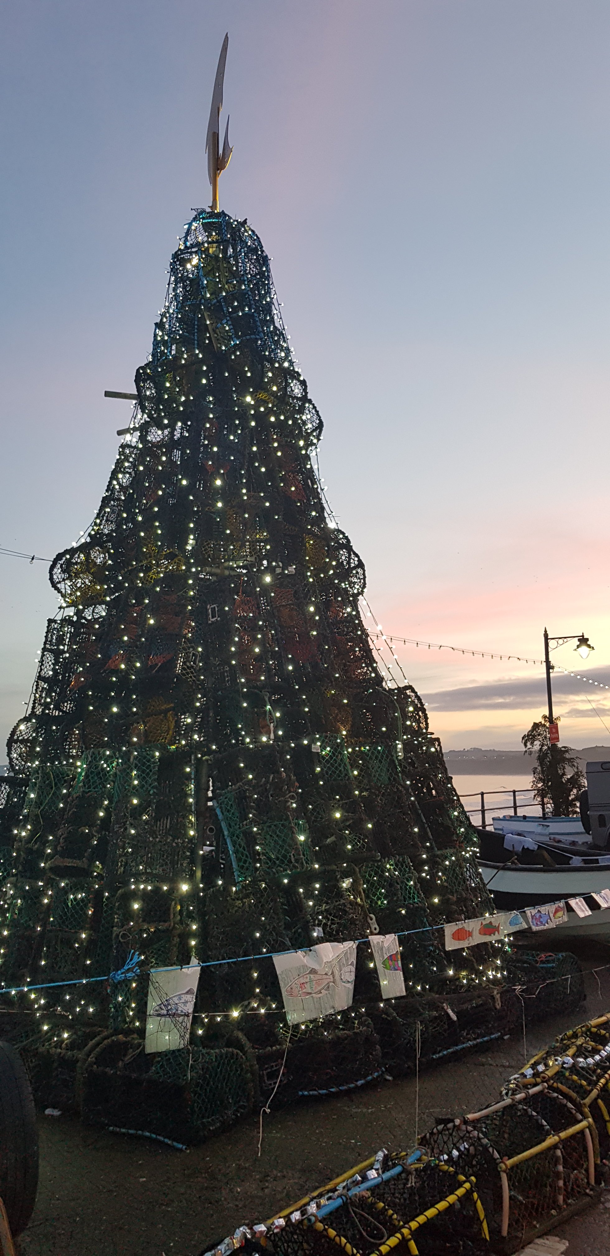 So today was the day for the 240 mile round trip to complete this activity. For the 3rd year running, the town community has created a “Fishtive” Christmas tree on the coble landing, made out of crab and lobster pots.