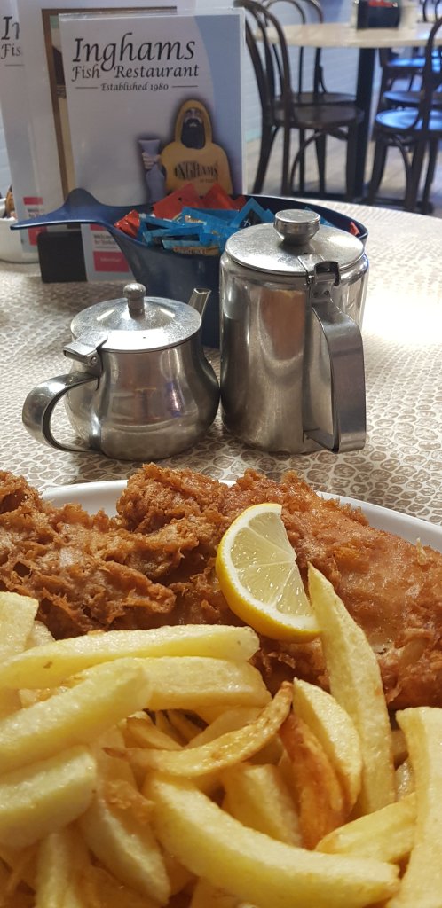 So on to the main event, fish and chips! Being 3 sleeps to Christmas, I had only expected a couple of chippies to be open, however, they were all open, but were shutting early. We missed our favourite The Brown Room, so headed to Inghams round the corner where we got in 5 minutes before they closed their door.